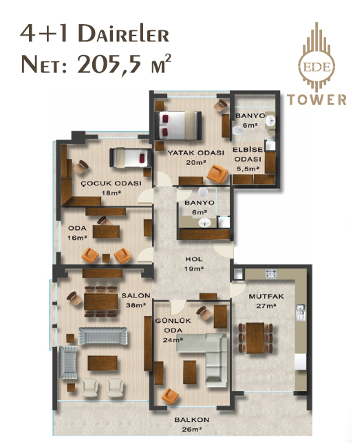 Daire Seçenekleri: 1+1,2+1,3+1,4+1