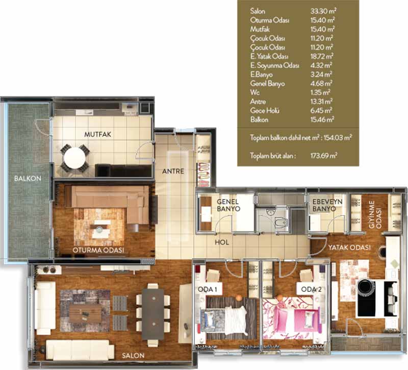 Metrekare Aralığı: 173 M2 başlıyor