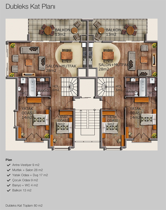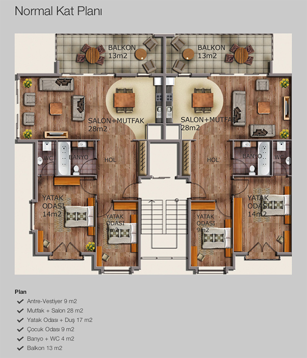 Daire Seçenekleri: 2+1,3+1,4+1,5+2,6+2,4+2