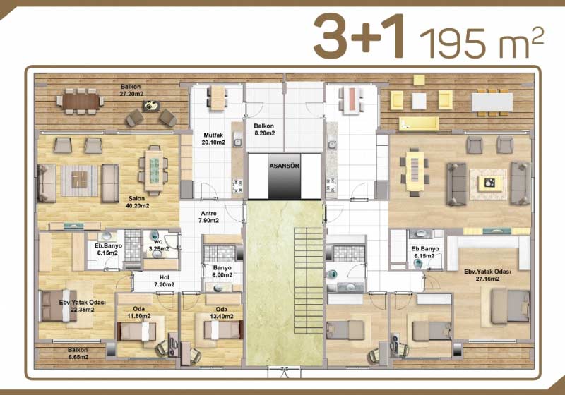 Daire Seçenekleri: 3+1,4+1,5+1,6+1
