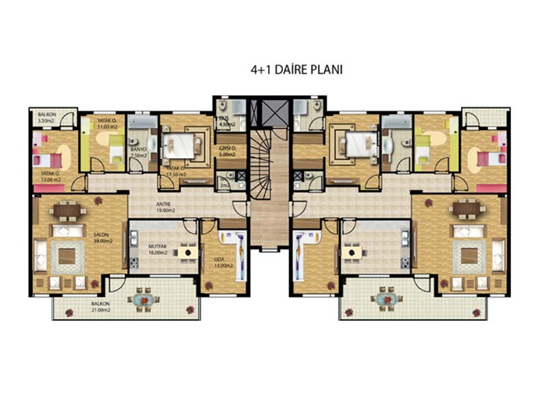 Daire Seçenekleri: 4+1, 5+2 dubleks