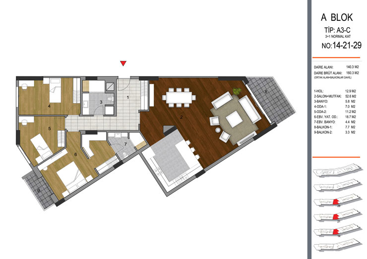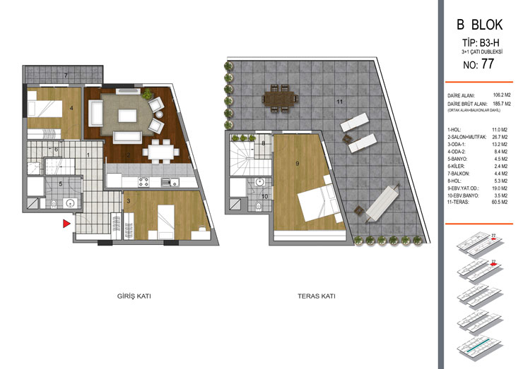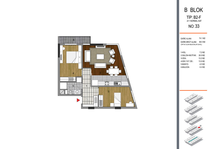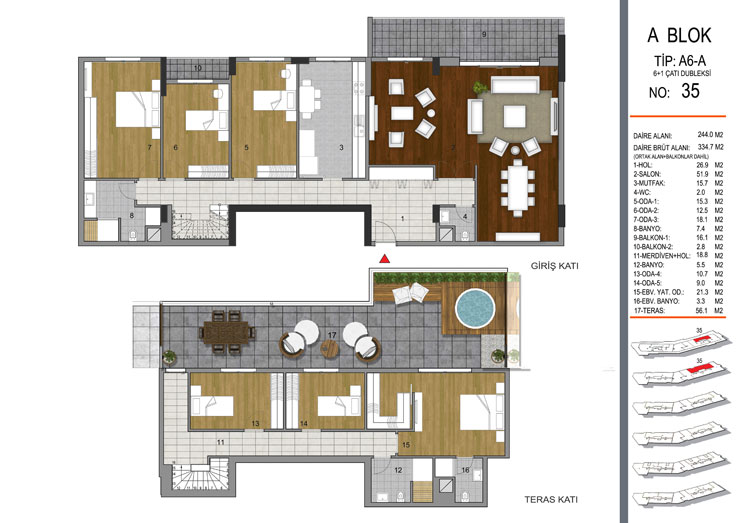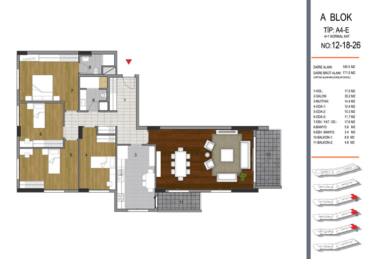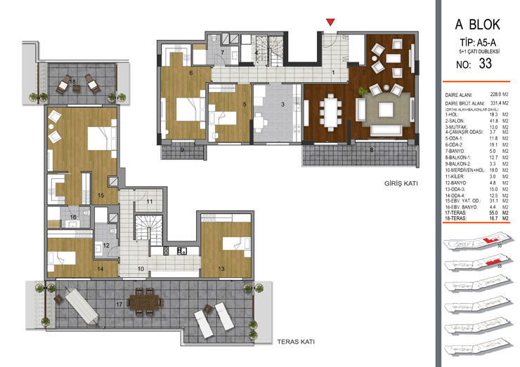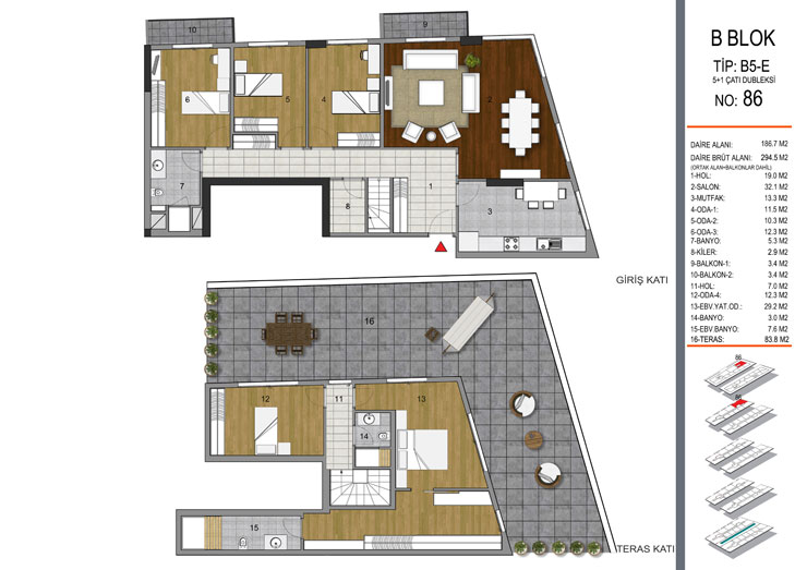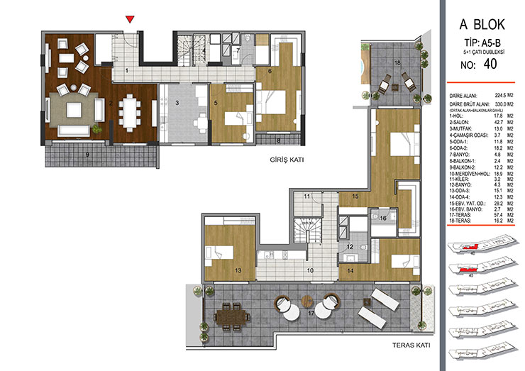 Daire Seçenekleri: 1+1,2+1,3+1,4+1+5+1,6+1