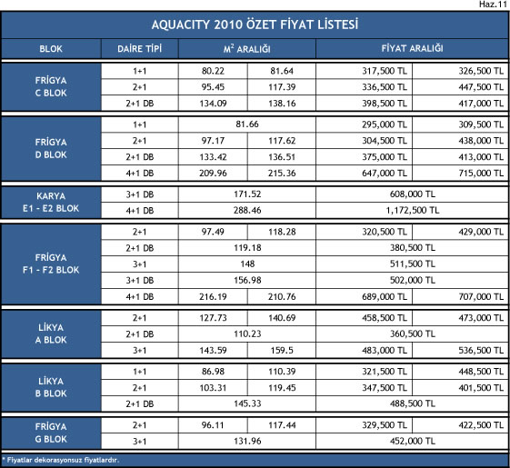 Daire Seçenekleri: 1+1, 2+1, 3+1, 3.5+1, 4+1