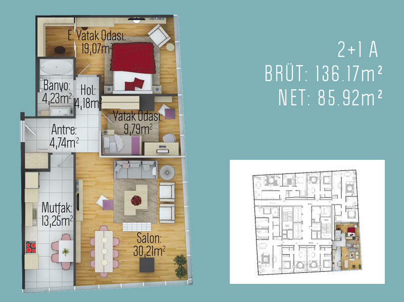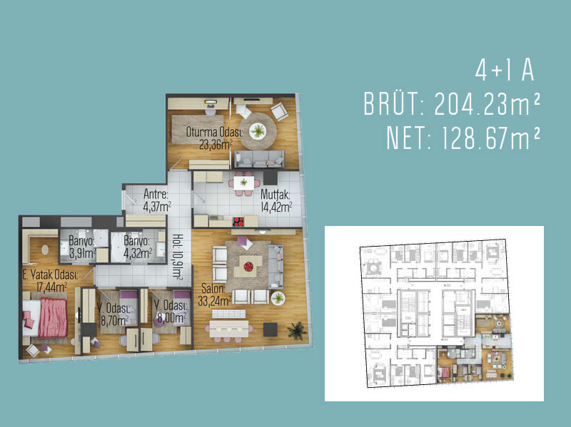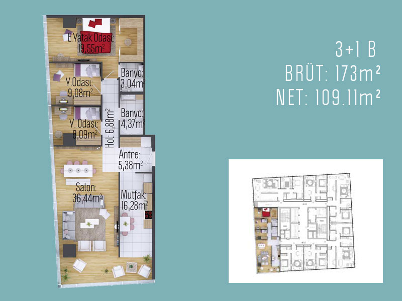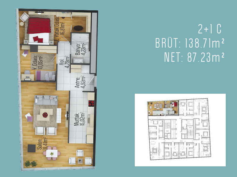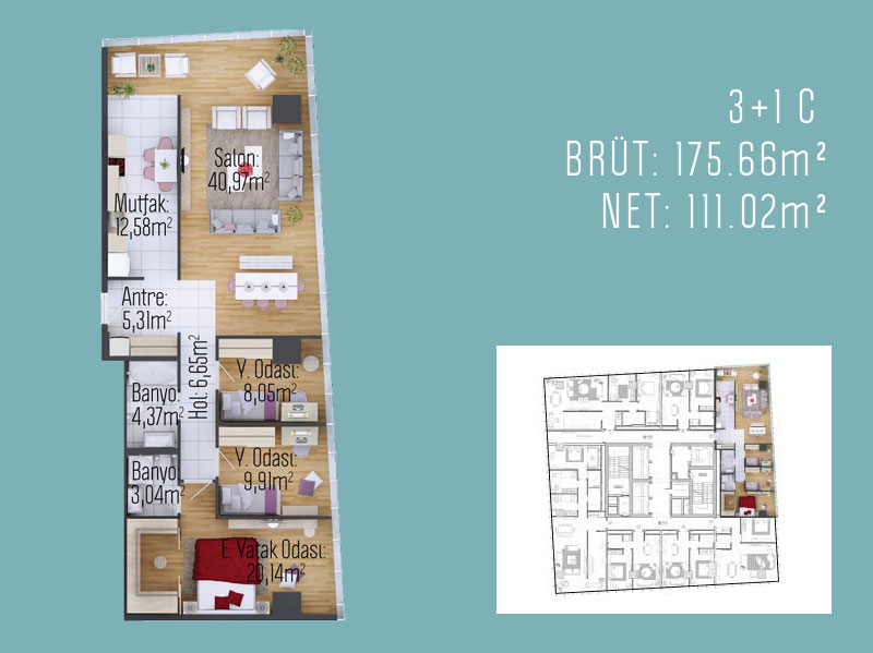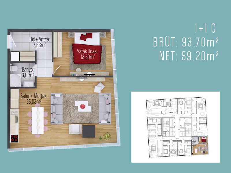 Daire Seçenekleri: 1+0,1+1,2+1,3+1,4+1