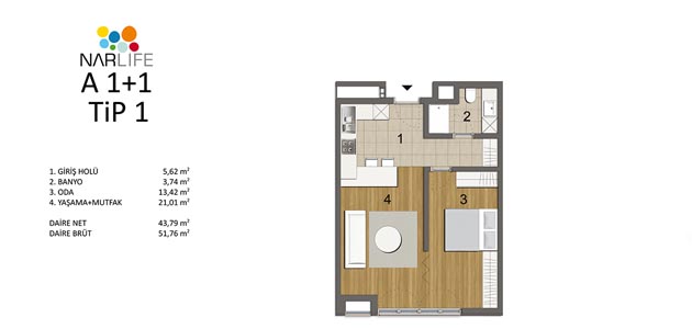 Daire Seçenekleri: 1+0,1+1,2+1,3+1,4+1