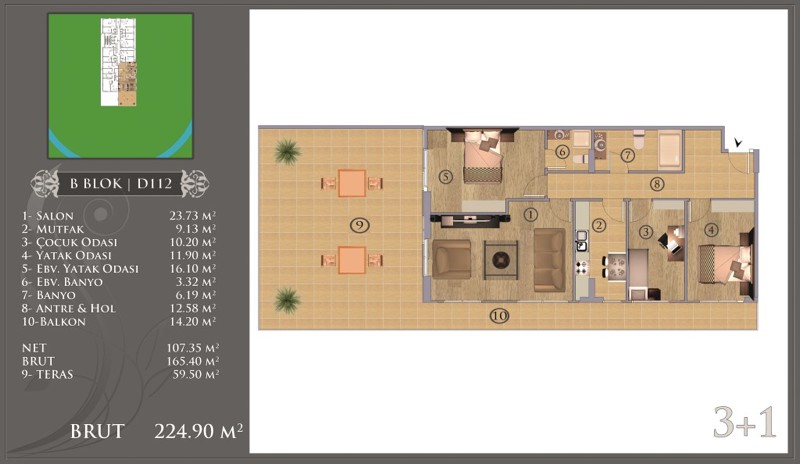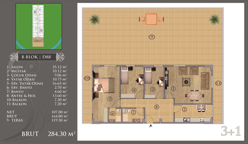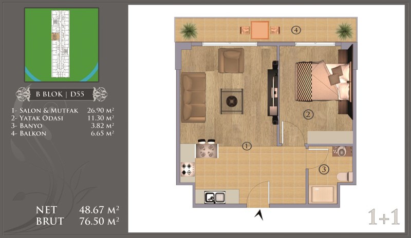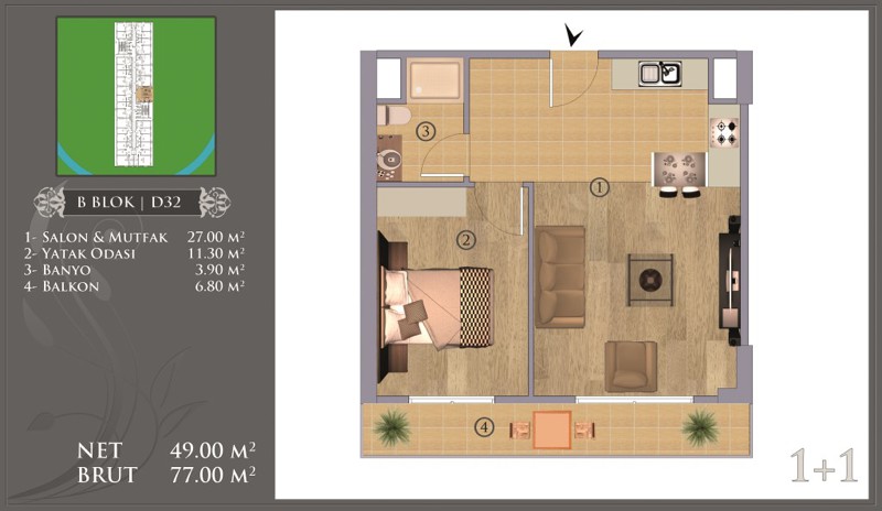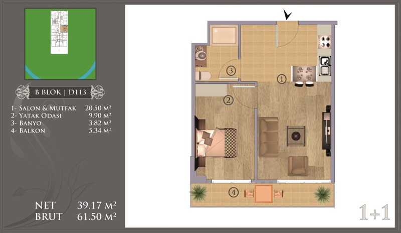 Daire Seçenekleri: 1+0,1+1,2+1,3+1