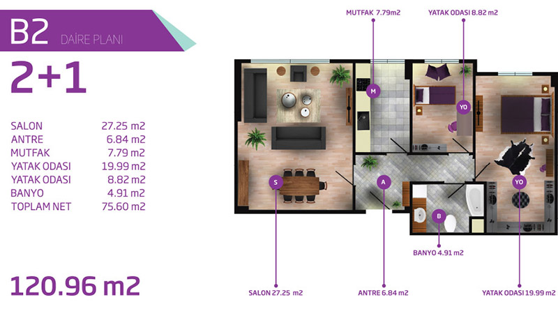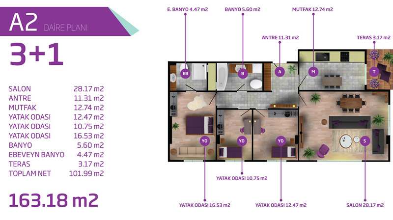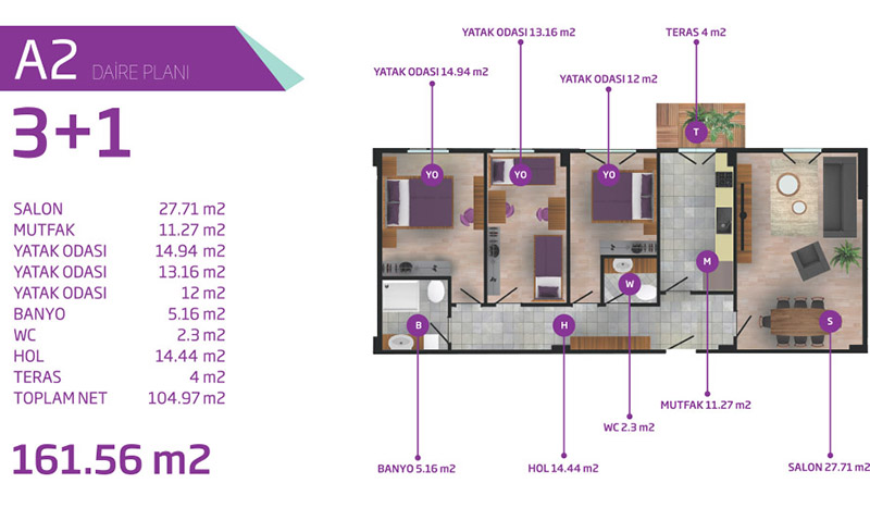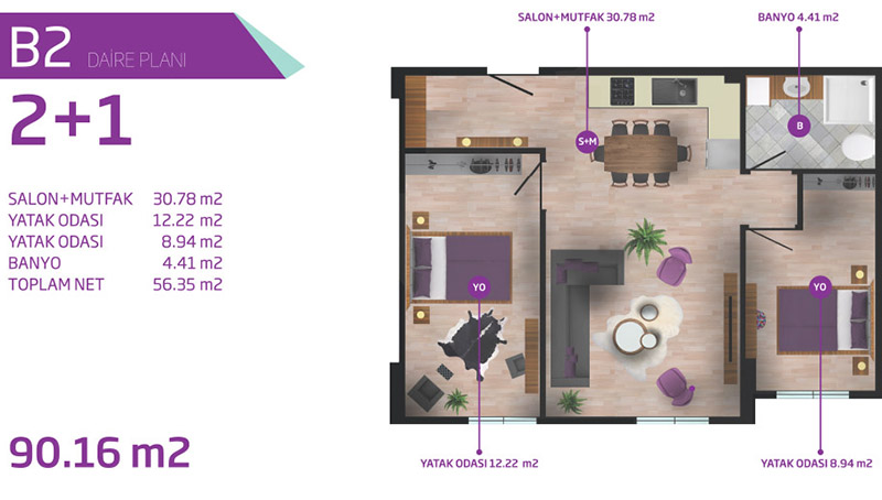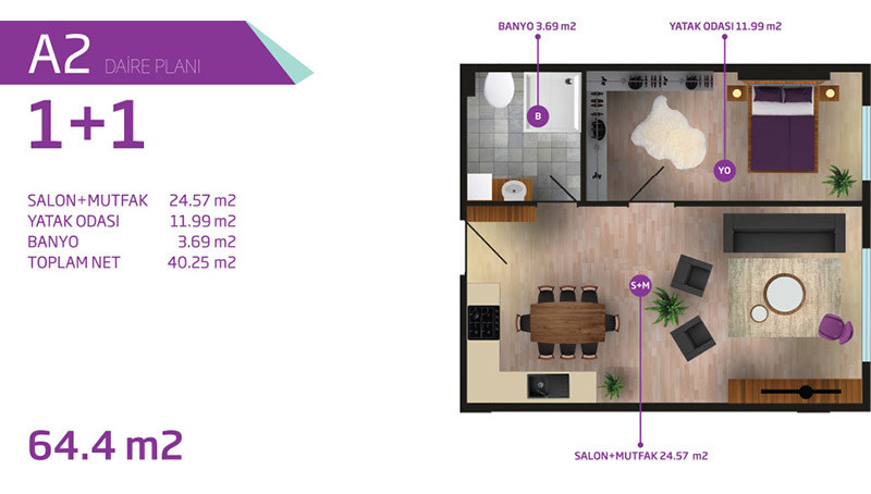 Daire Seçenekleri: 1+1, 2+1, 3+1