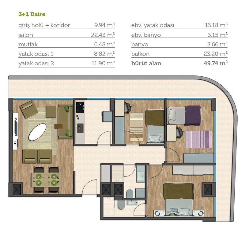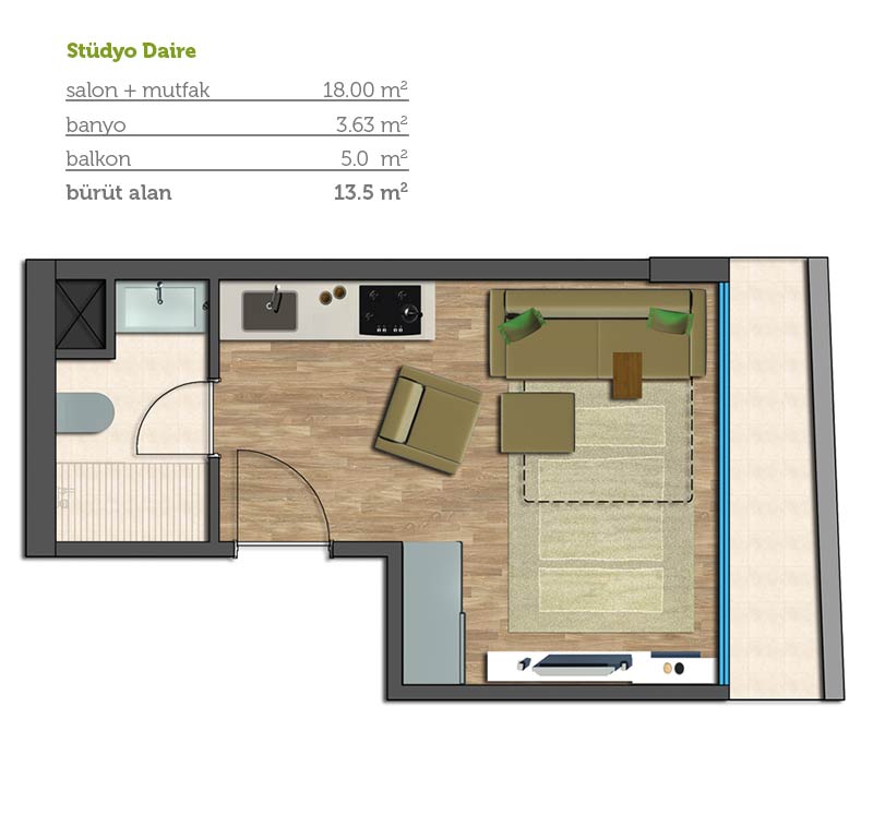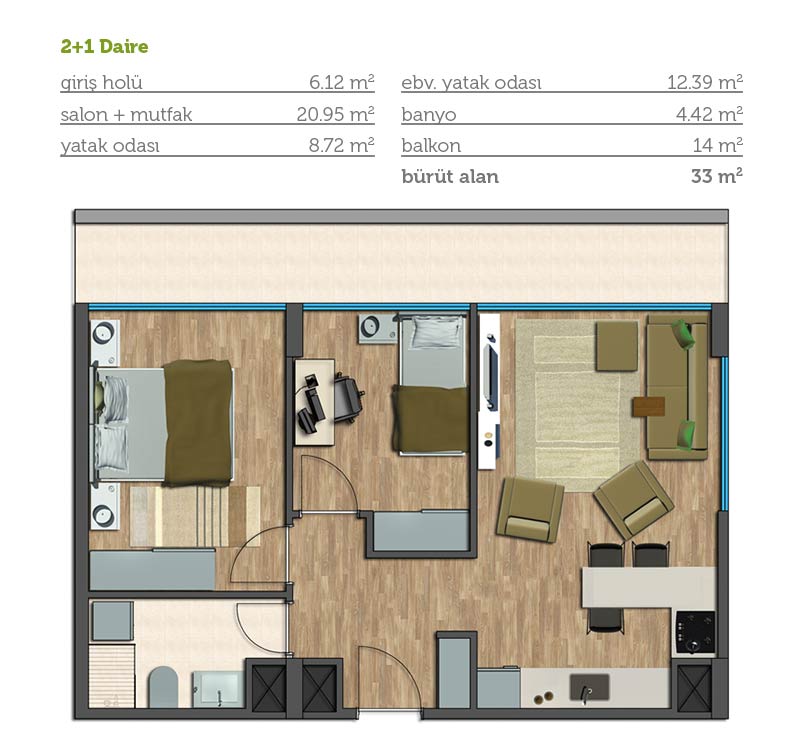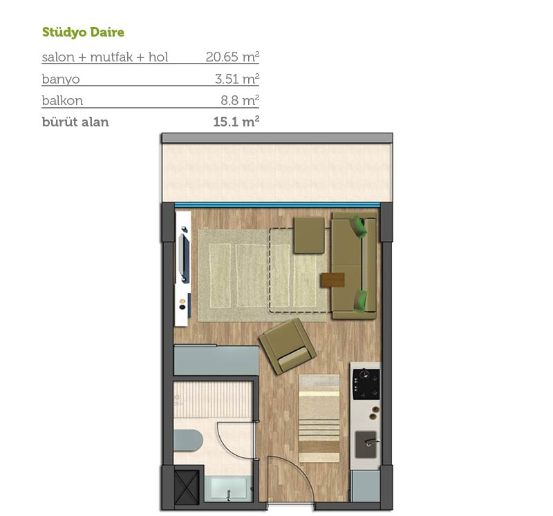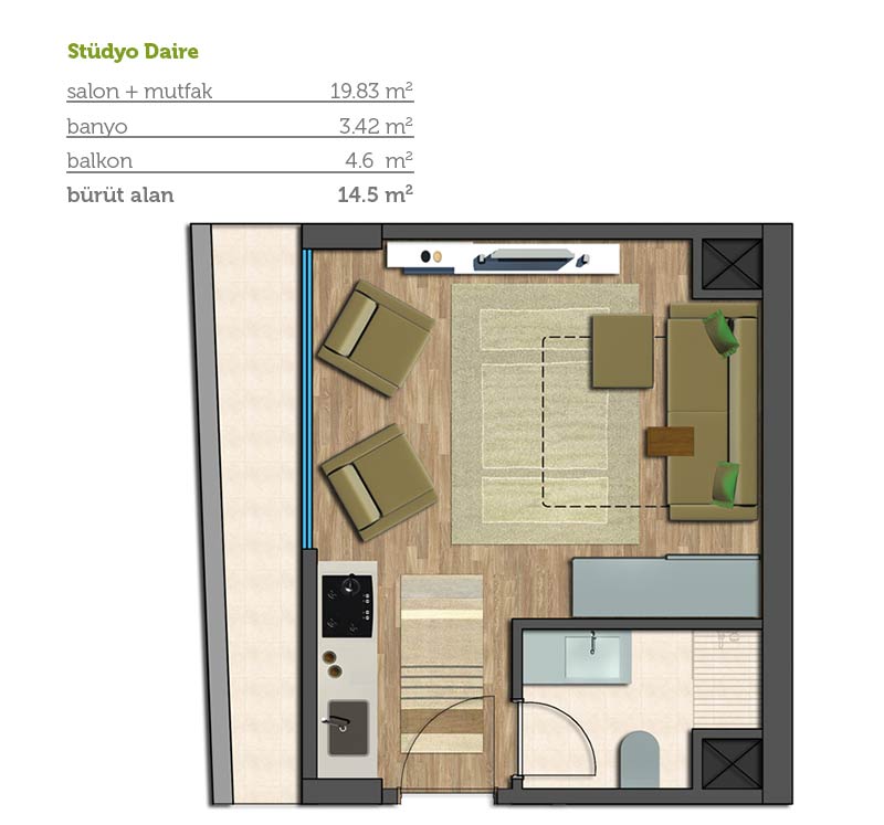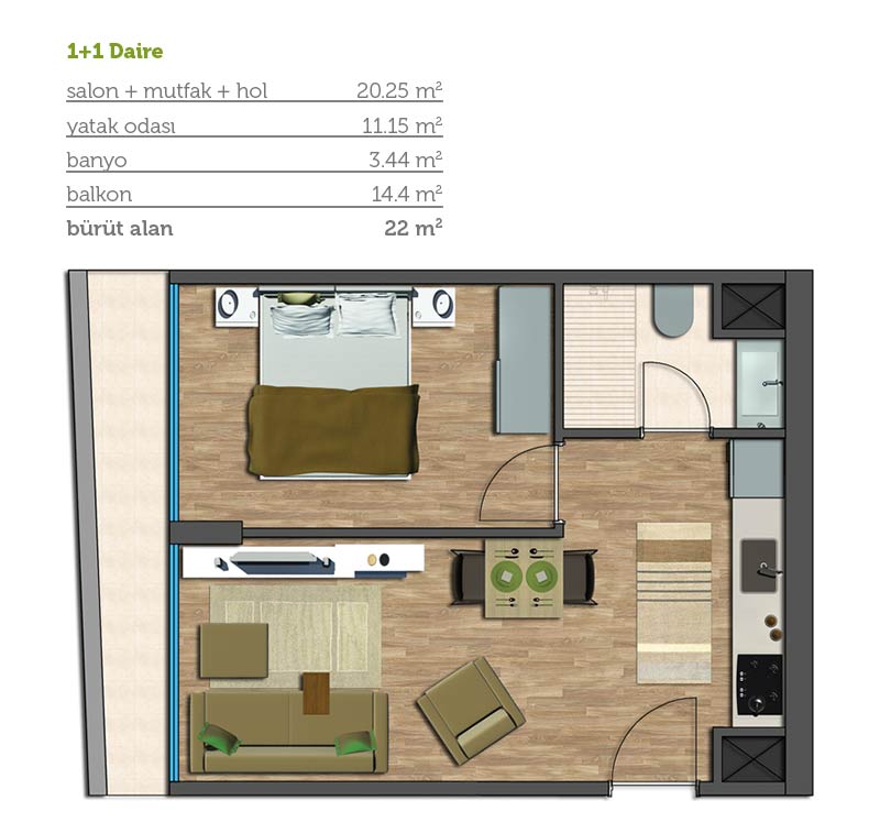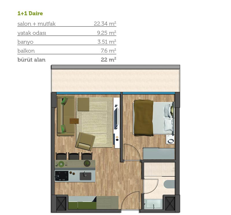 Daire Seçenekleri: 1+0,1+1,2+1,3+1