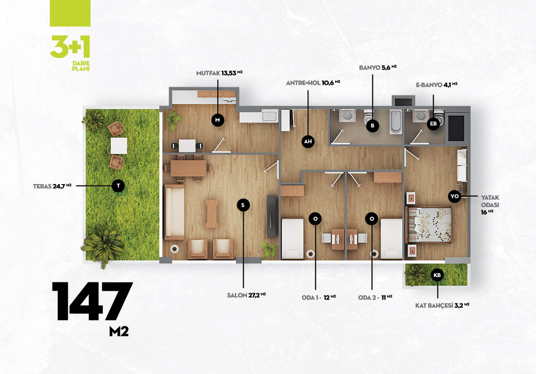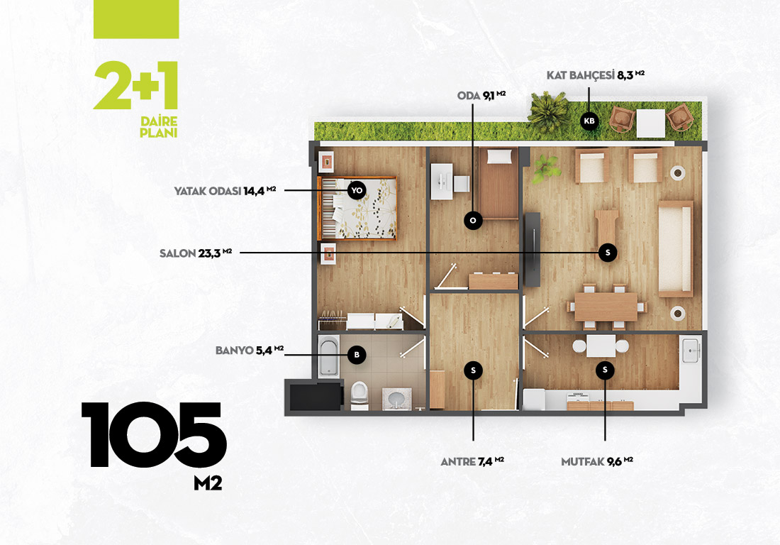 Daire Seçenekleri: 1+1,2+1,3+1