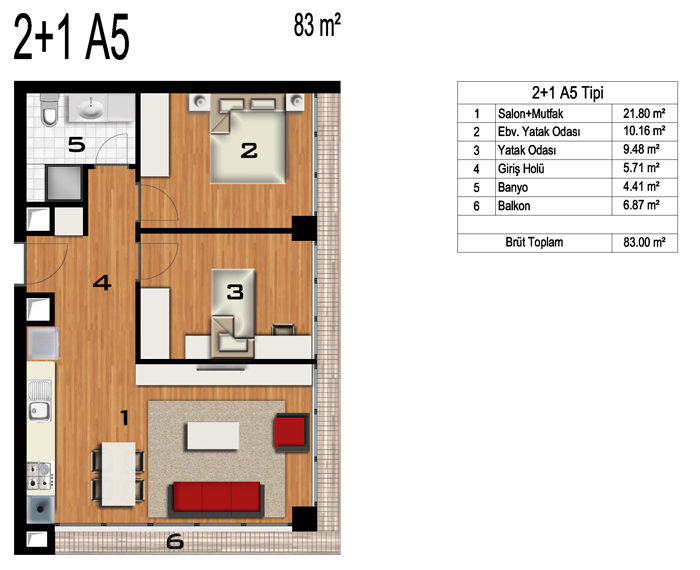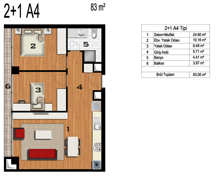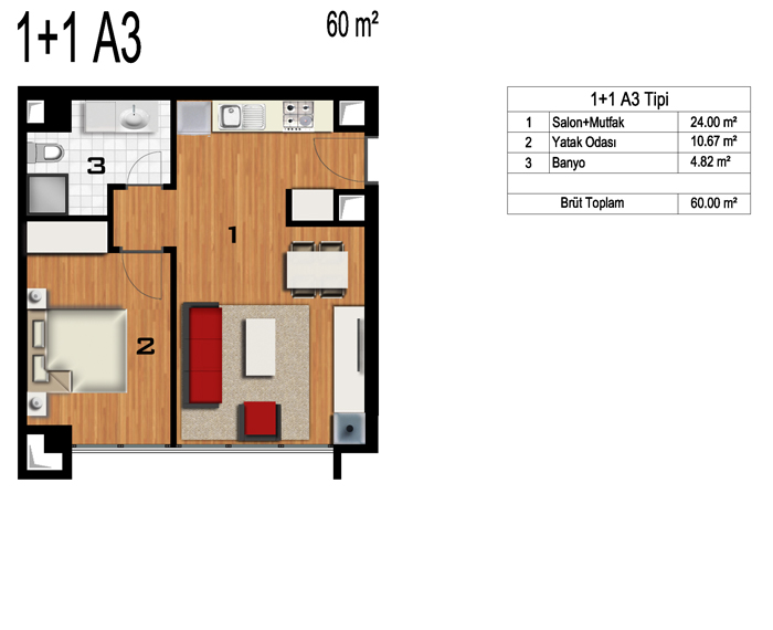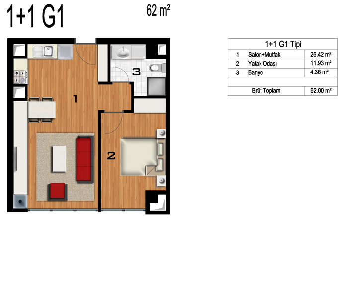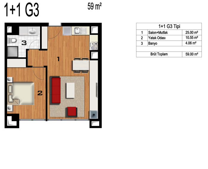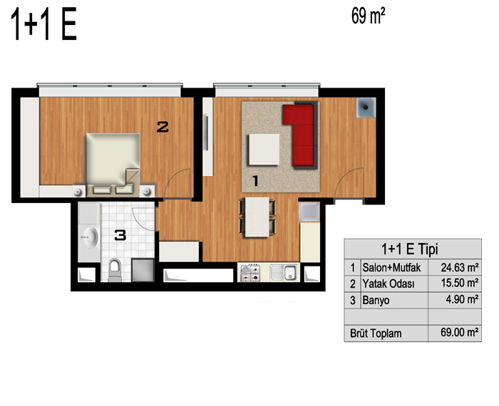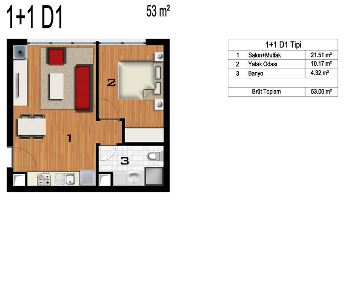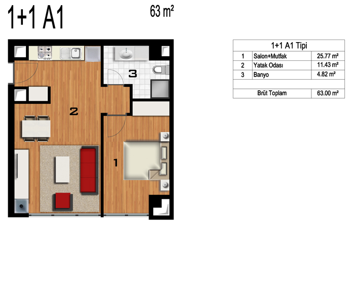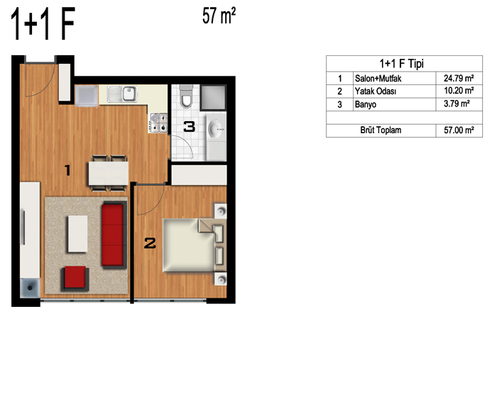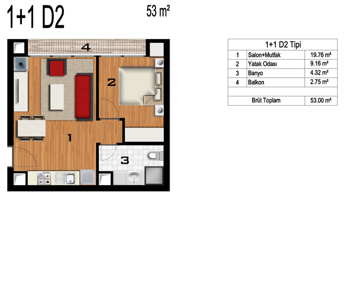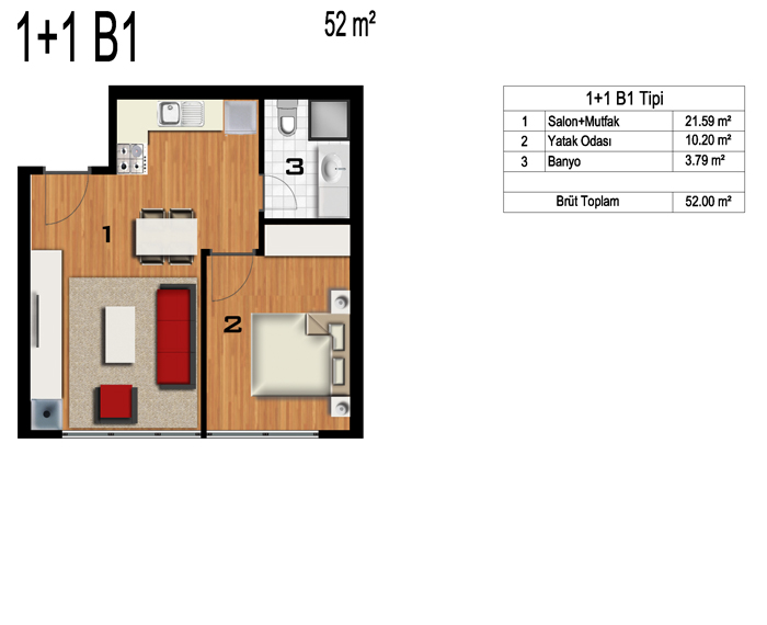 Daire Seçenekleri: 1+0,1+1,2+1