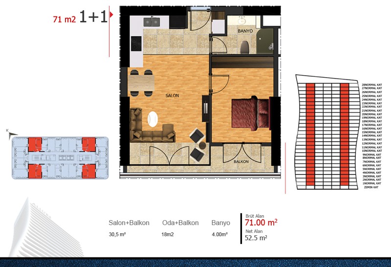 Metrekare Aralığı: 71