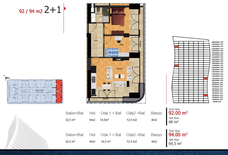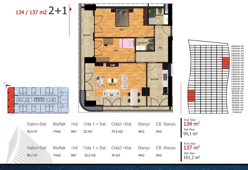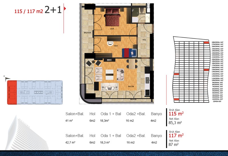 Daire Seçenekleri: 1+1,2+1