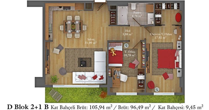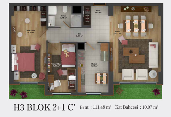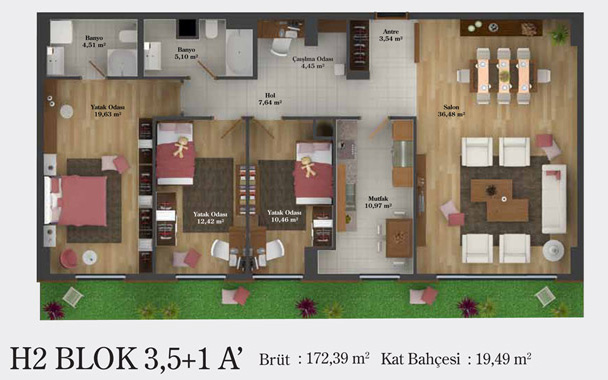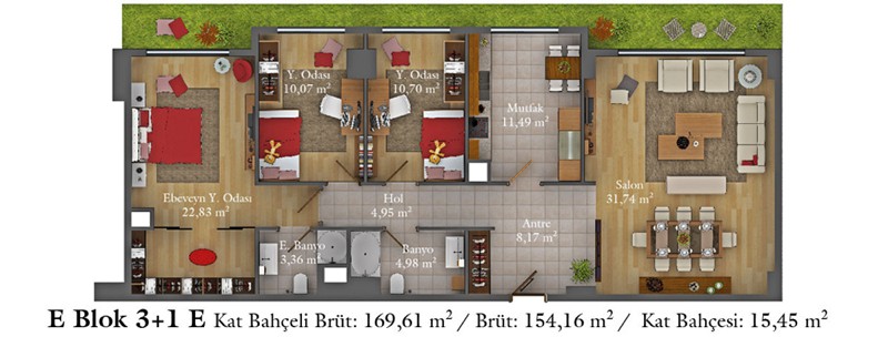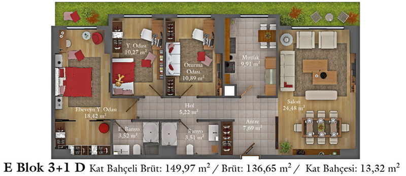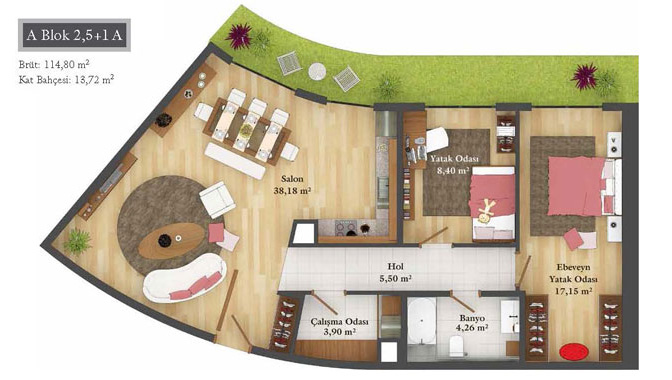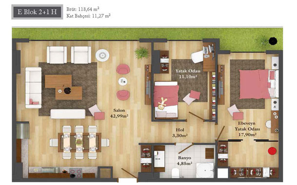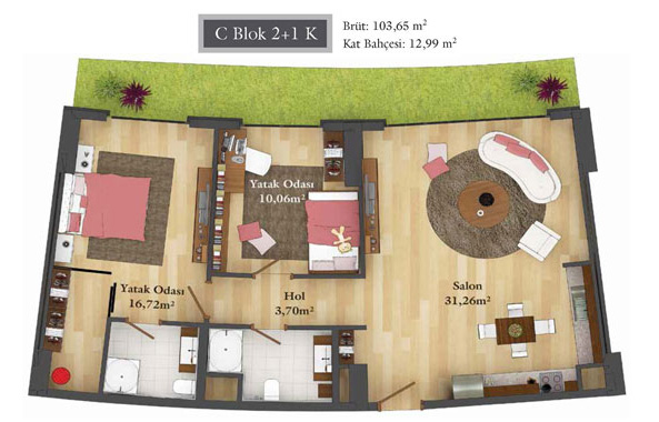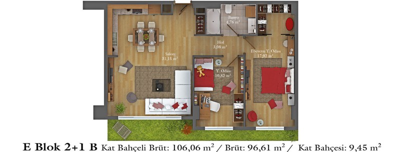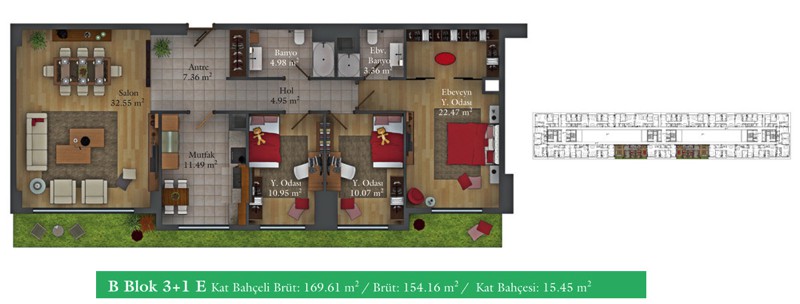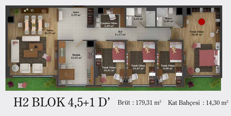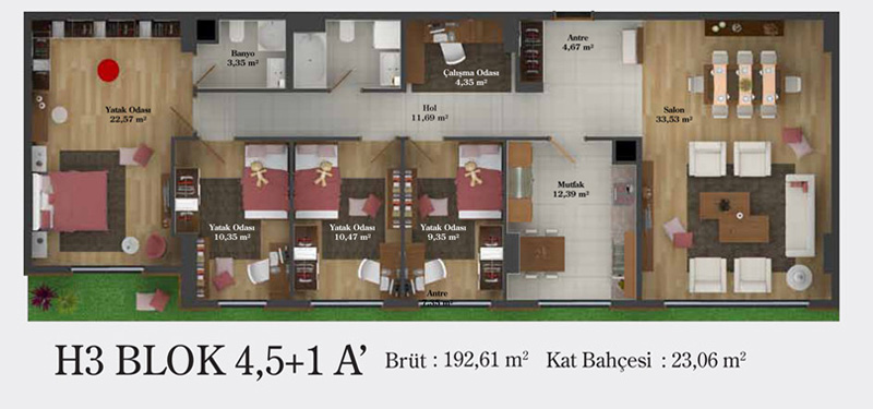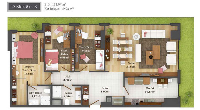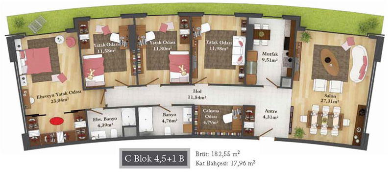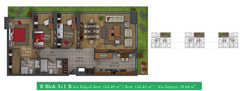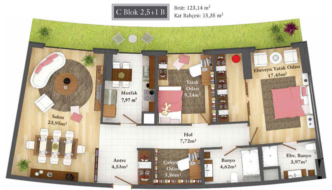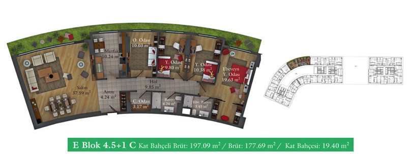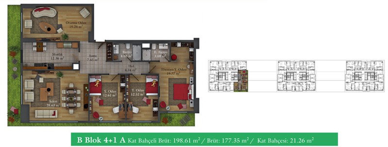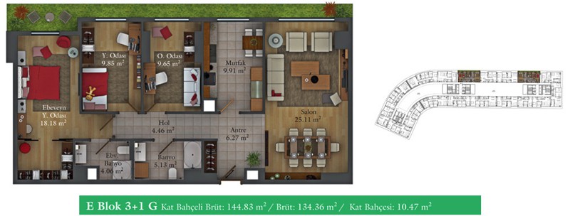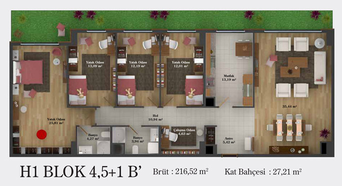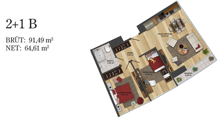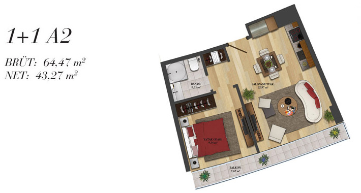 Daire Seçenekleri: 1+0,1+1,2+1,2,5+1,3+1,3,5+1,4+1,4,5+1