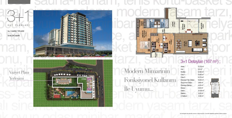Daire Seçenekleri: 1+0,1+1, 2+1,3+1