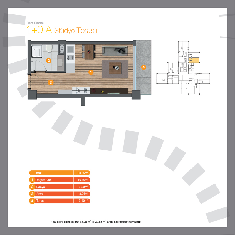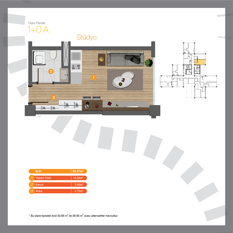 Daire Seçenekleri: 1+0,1+1,2+1,3+1