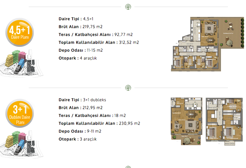 Daire Seçenekleri: 1+1,2+1,3+1,4+1,5+1