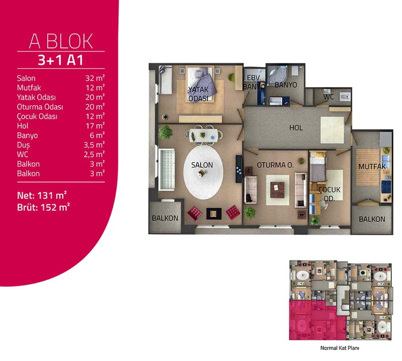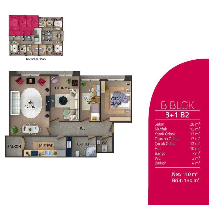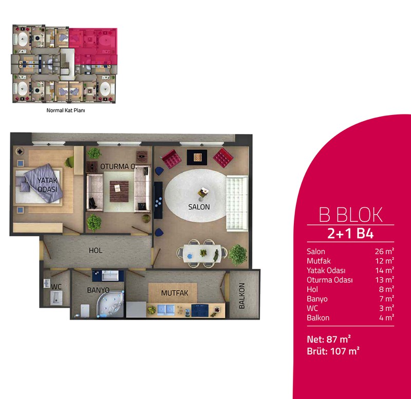 Daire Seçenekleri: 2+1,3+1