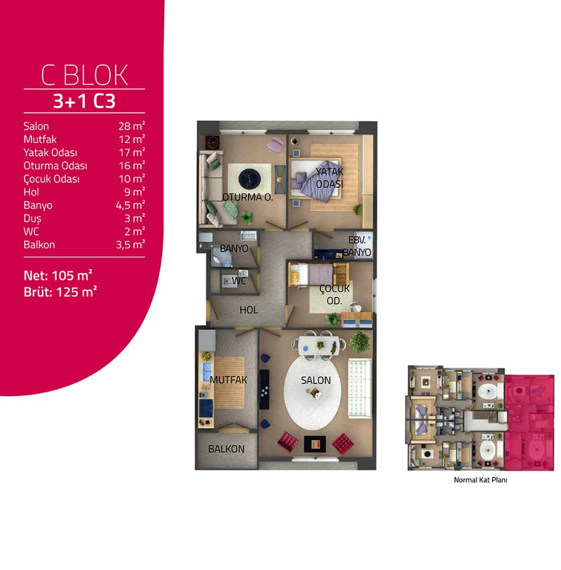 Metrekare Aralığı: 105