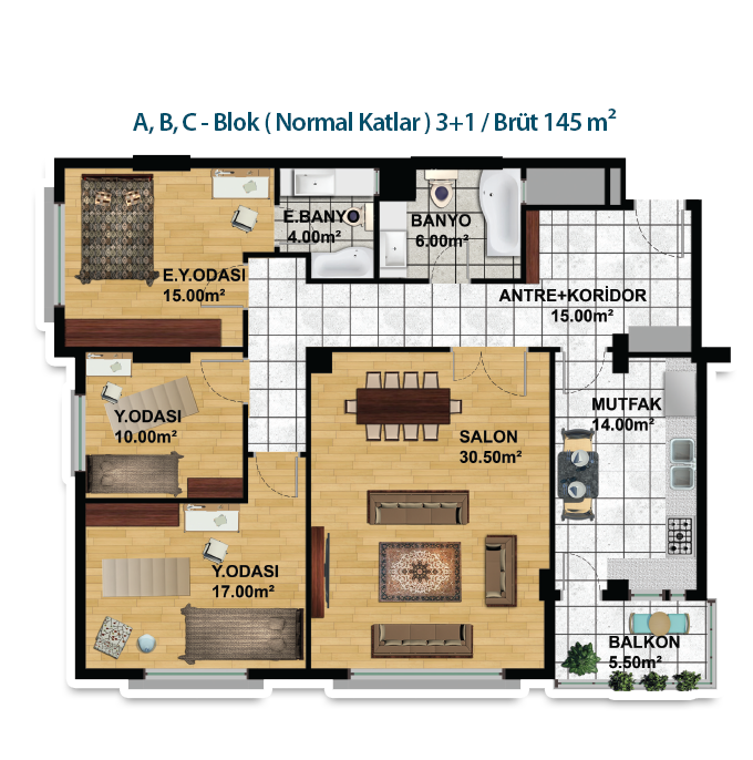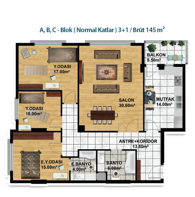 Daire Seçenekleri: 2+1,3+1,3+2,4+1