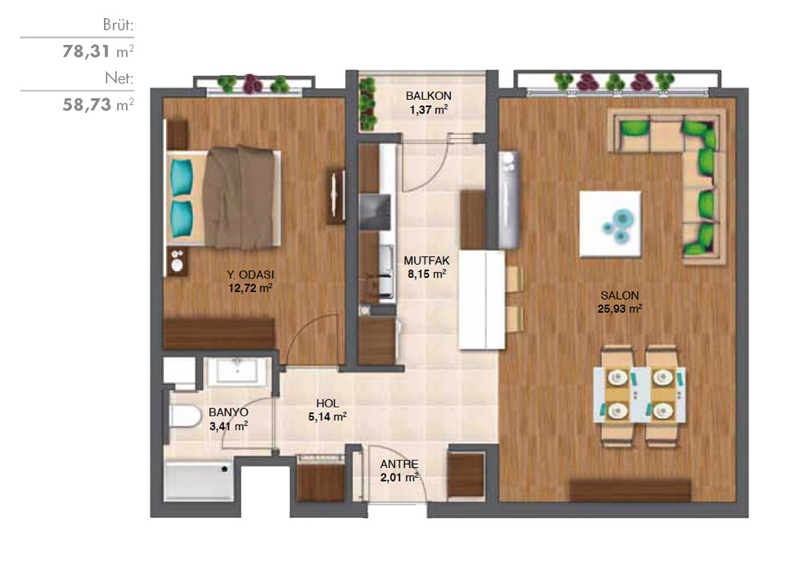 Daire Seçenekleri: 1+1,2+1,3+1,4+1