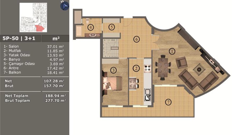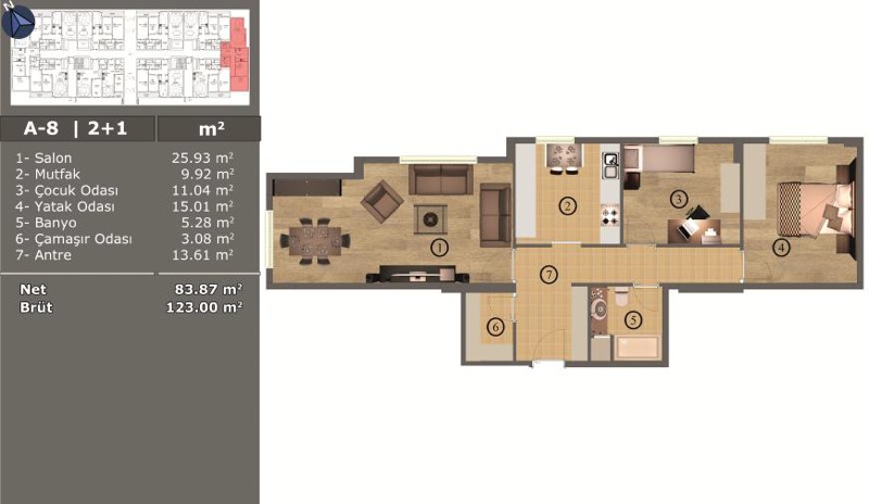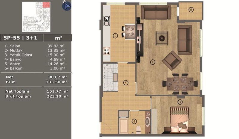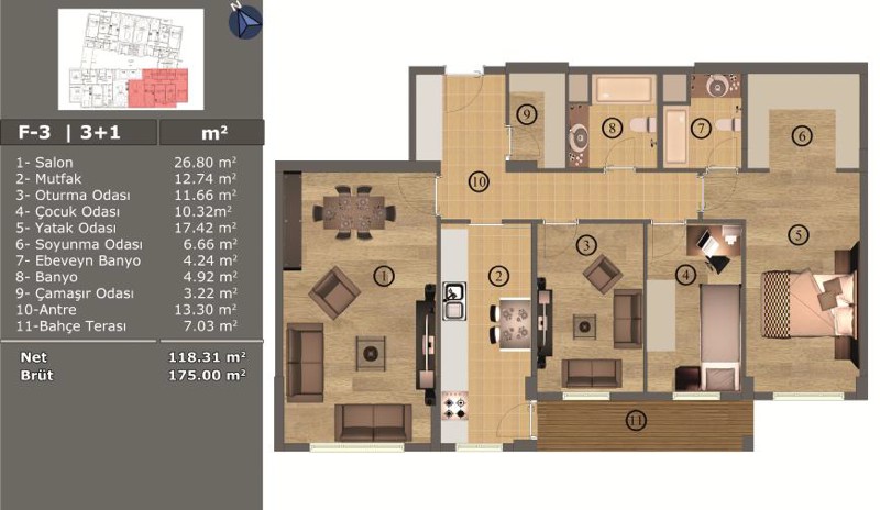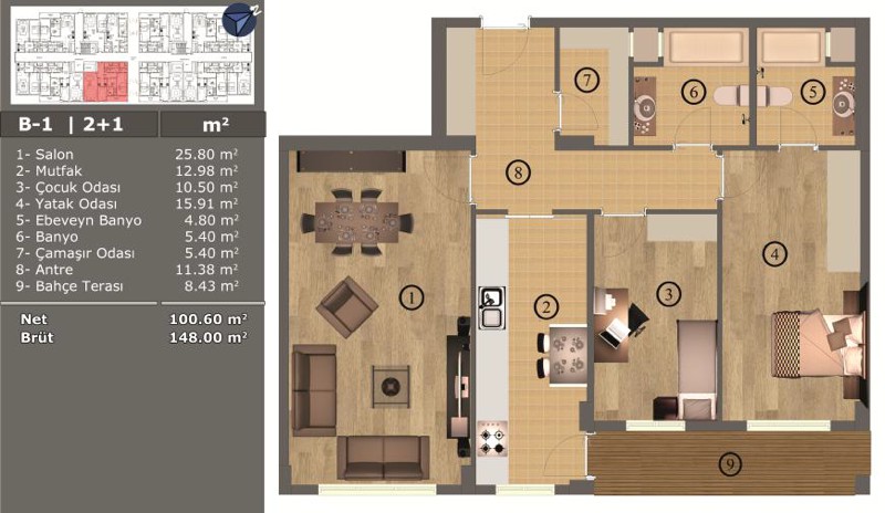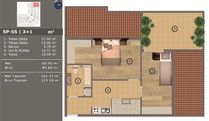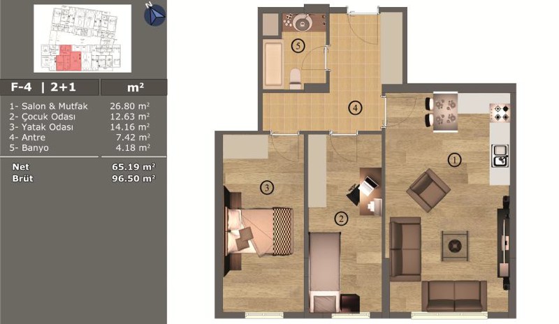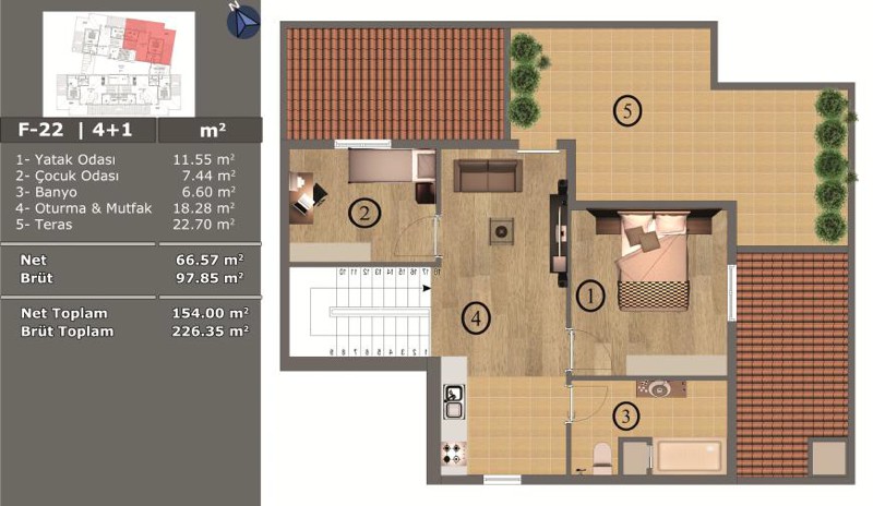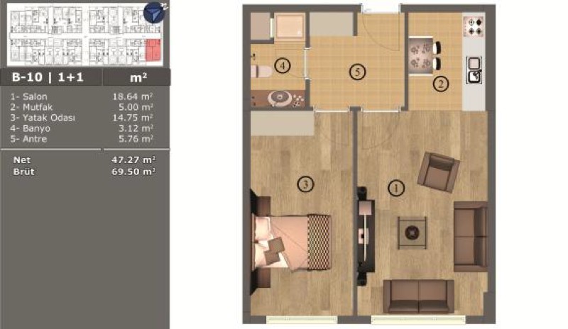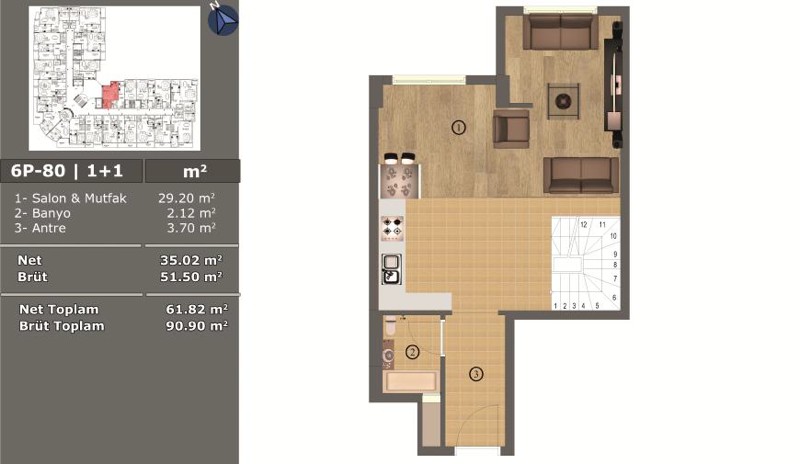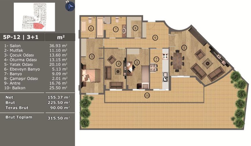 Daire Seçenekleri: 1+0,1+1,2+1,3+1,4+1+5+1