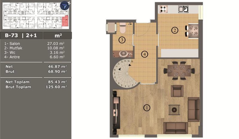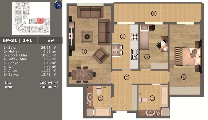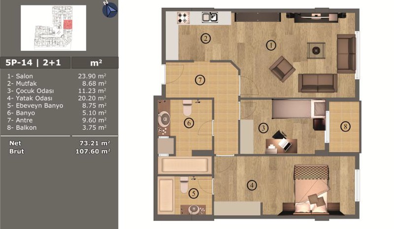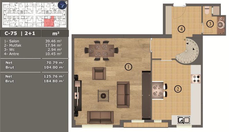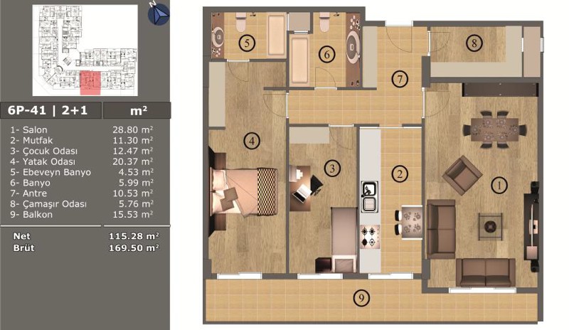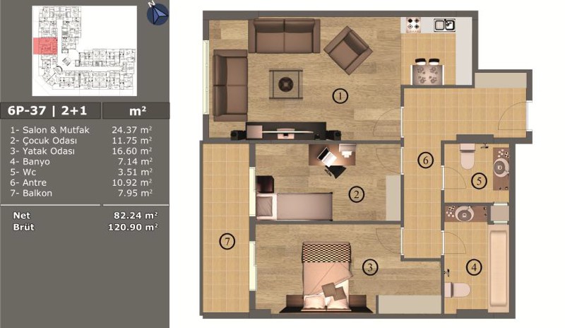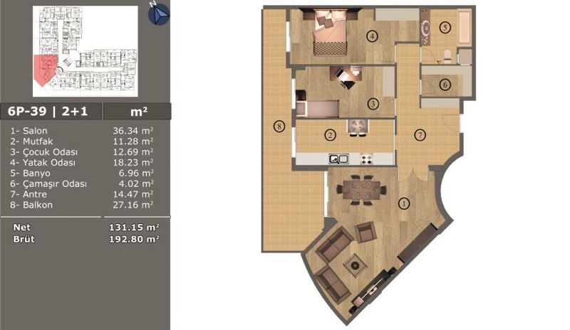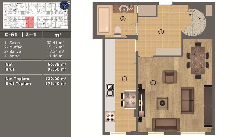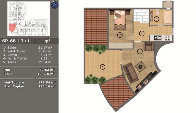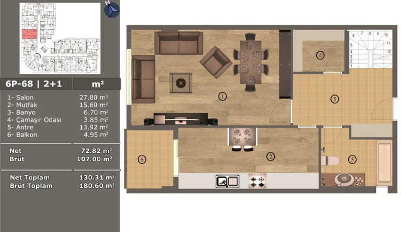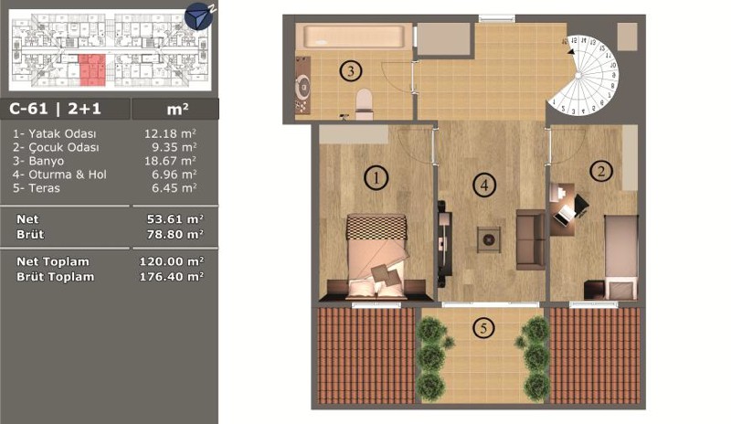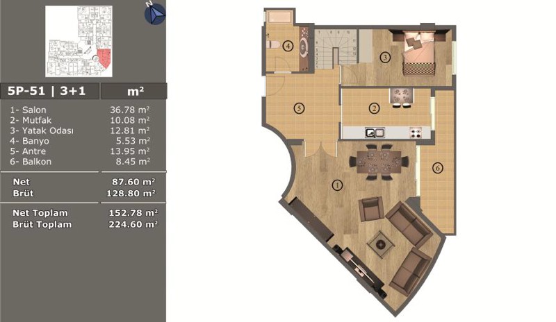 Daire Seçenekleri: 1+0,1+1,2+1,3+1,4+1+5+1