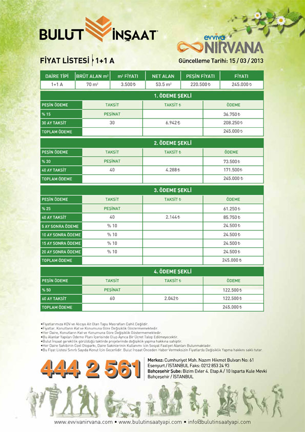 Daire Seçenekleri: 1+0,1+1,2+1,3+1,4+1,5+1