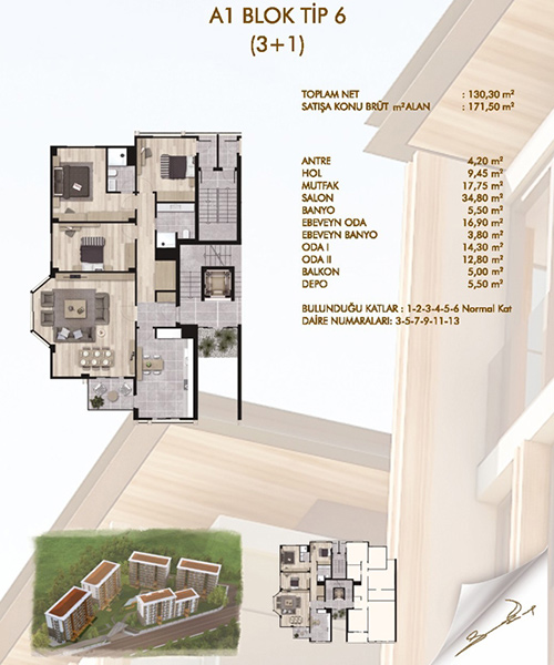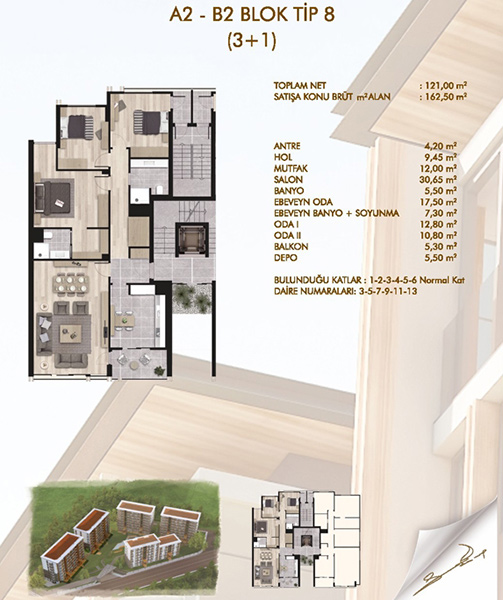 Daire Seçenekleri: 2+1,3+1,4+1,4+2,5+1,5+2