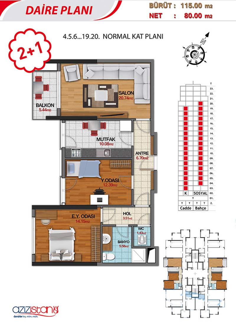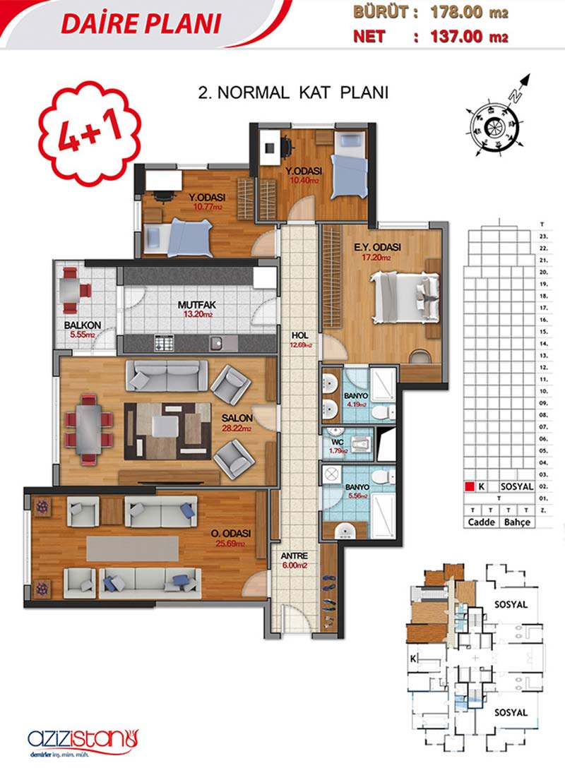 Daire Seçenekleri: 2+1, 3+1, 4+1, 5+1
