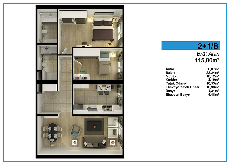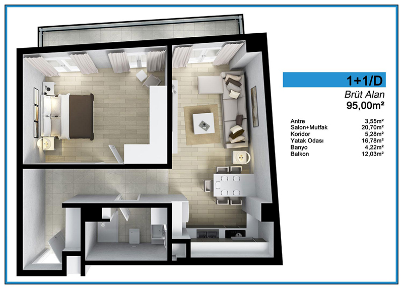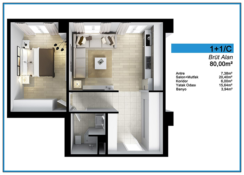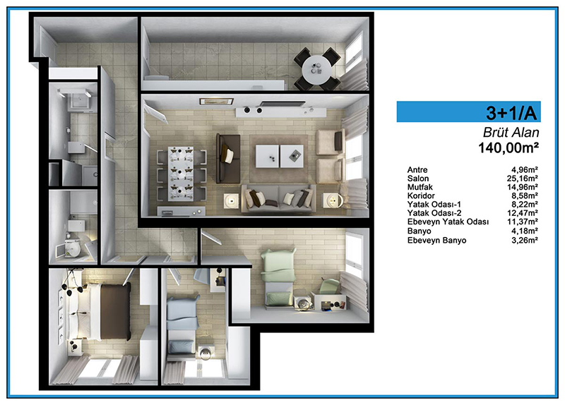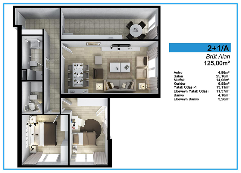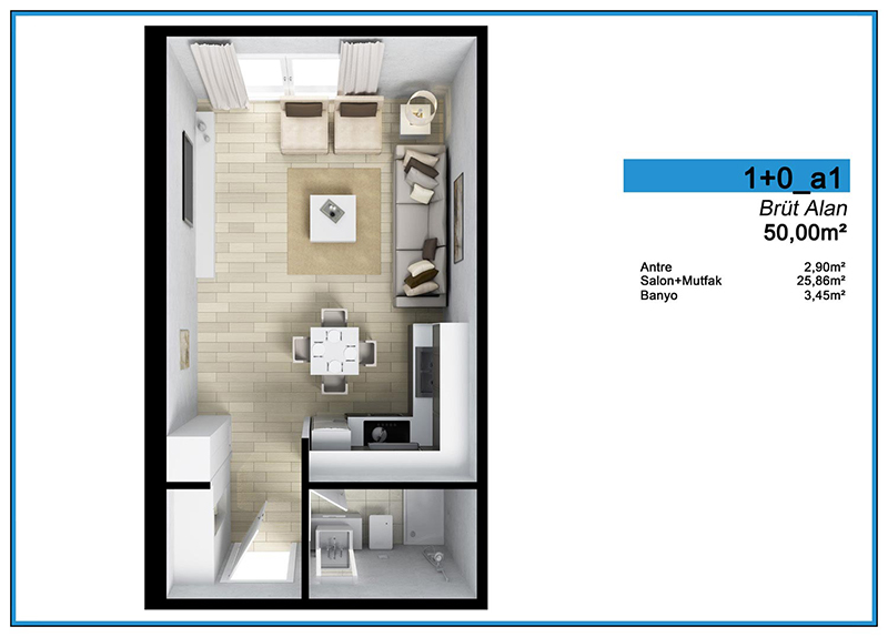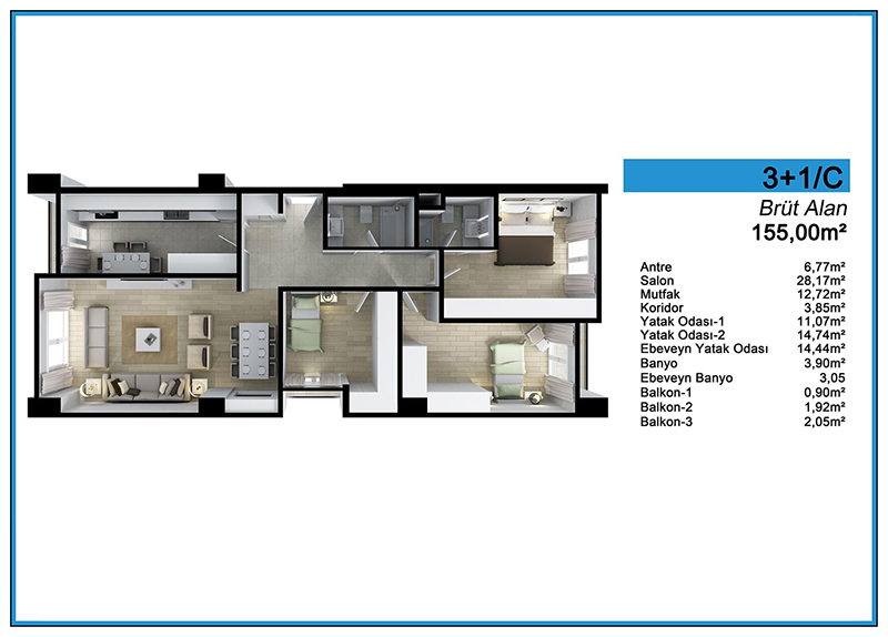 Daire Seçenekleri: 1+0,1+1,2+1,3+1