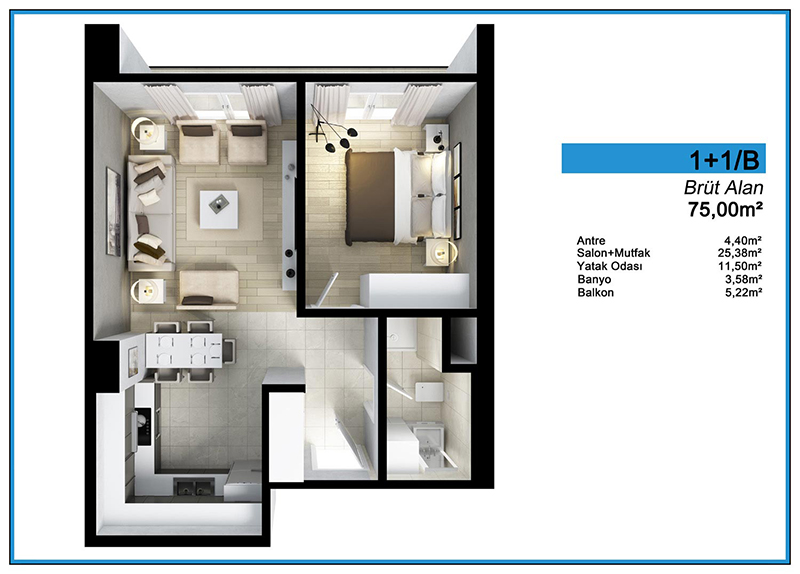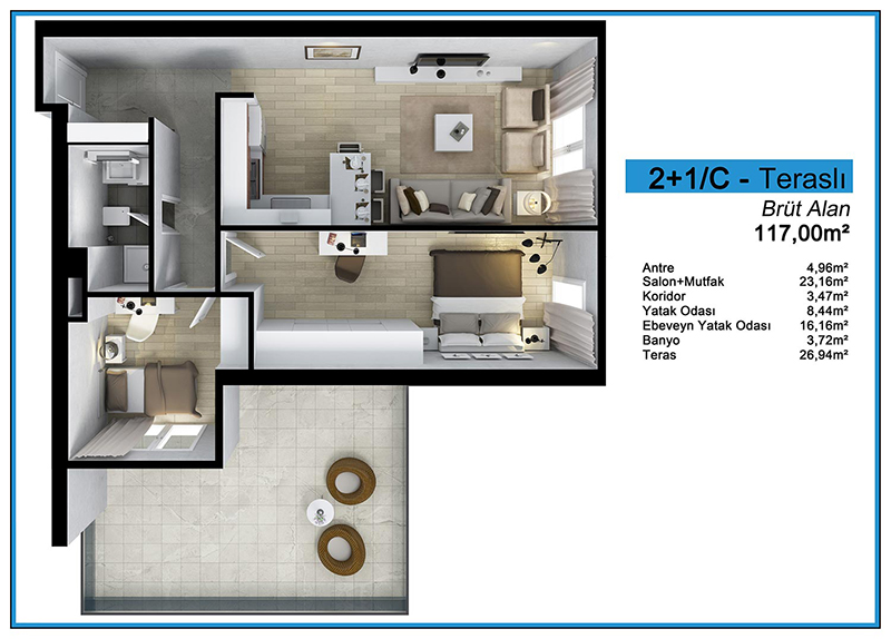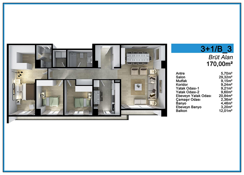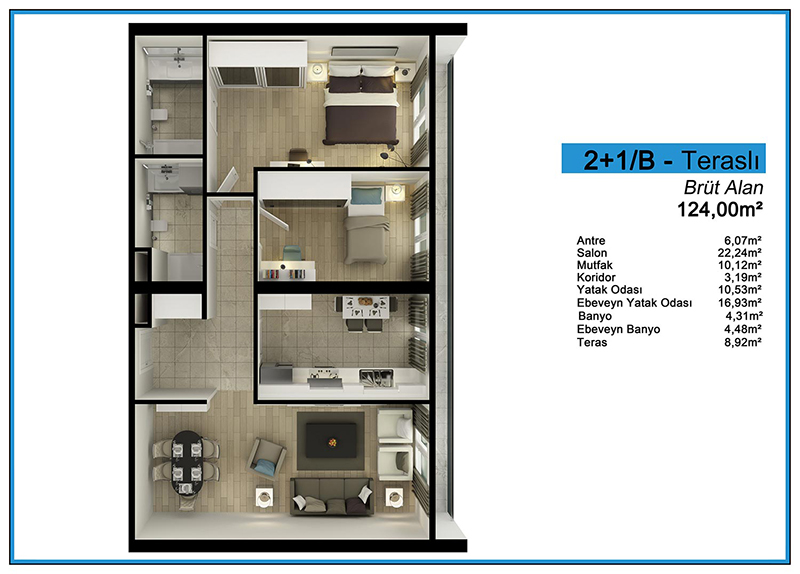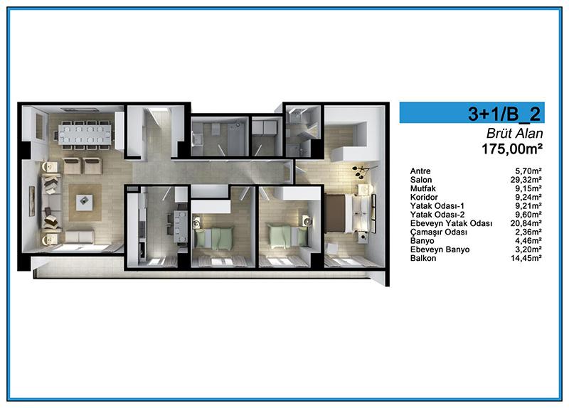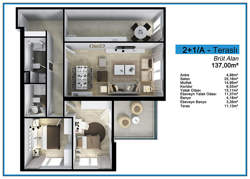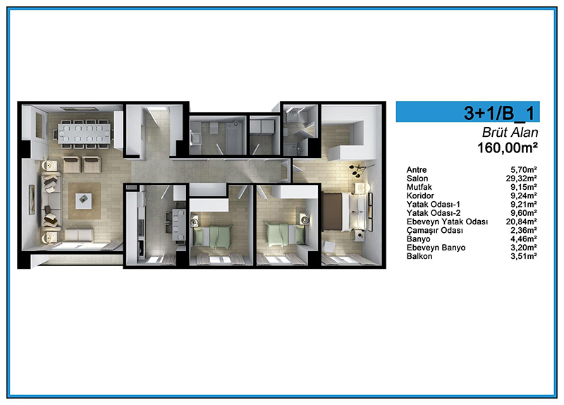 Daire Seçenekleri: 1+0,1+1,2+1,3+1
