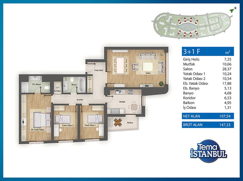 Daire Seçenekleri: 1+1,2+1,3+1,4+1