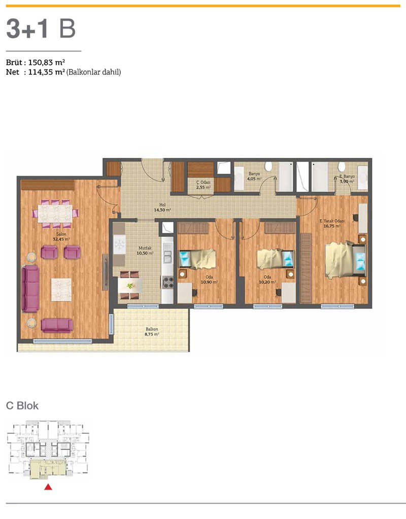 Daire Seçenekleri: 1+1,2+1,3+1,4+1