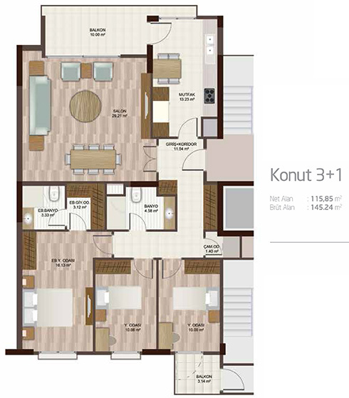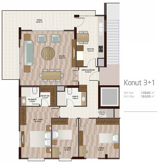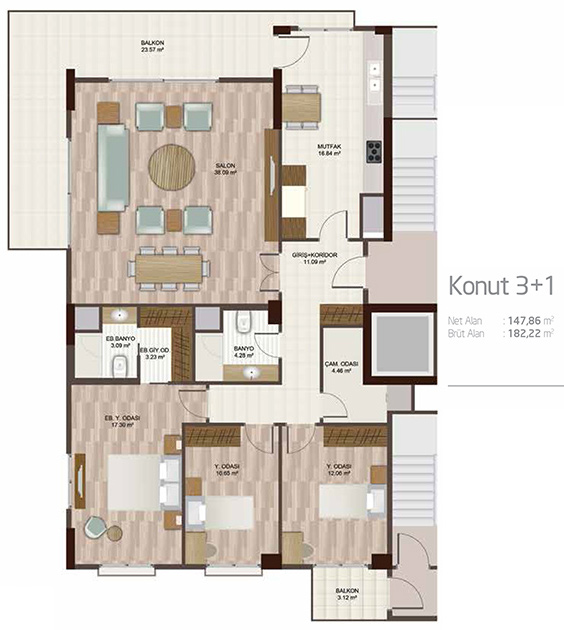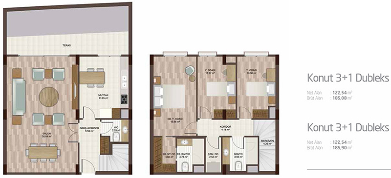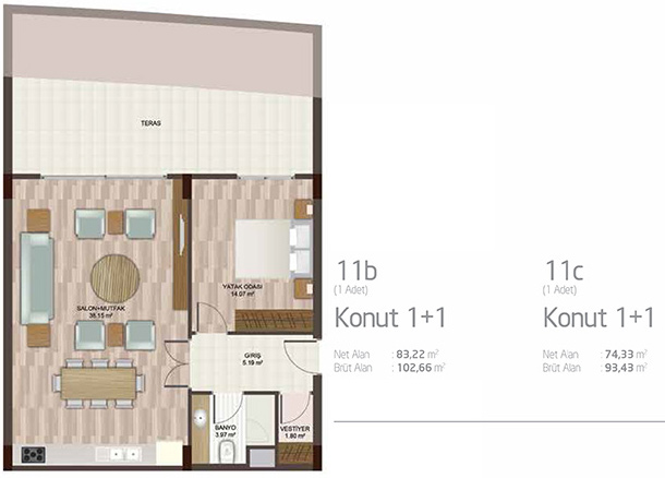 Daire Seçenekleri: 1+1,2+1,3+1,4+1,5+1
