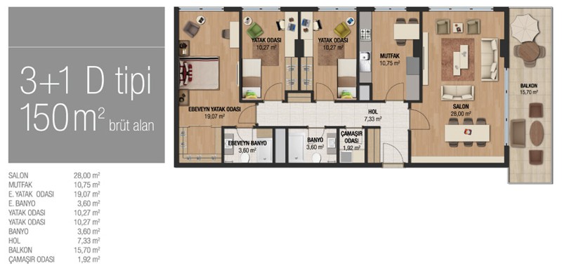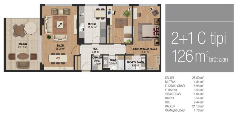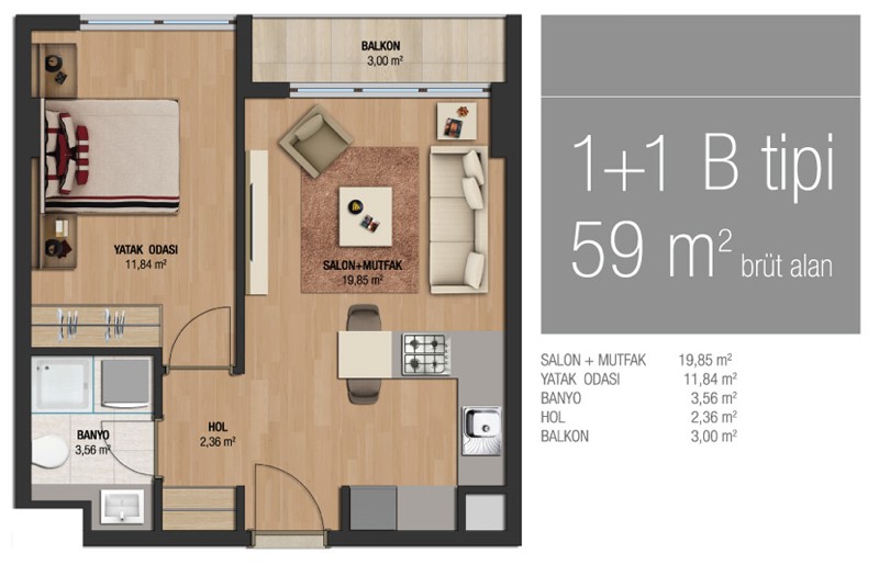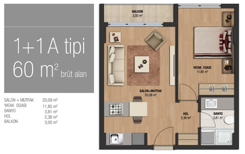Daire Seçenekleri: 1+0,1+1,2+1,3+1