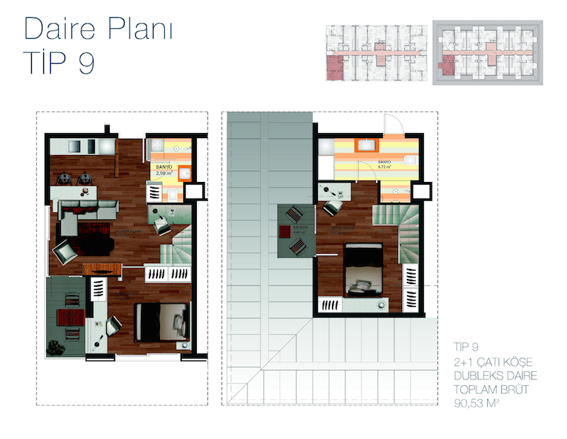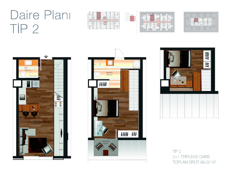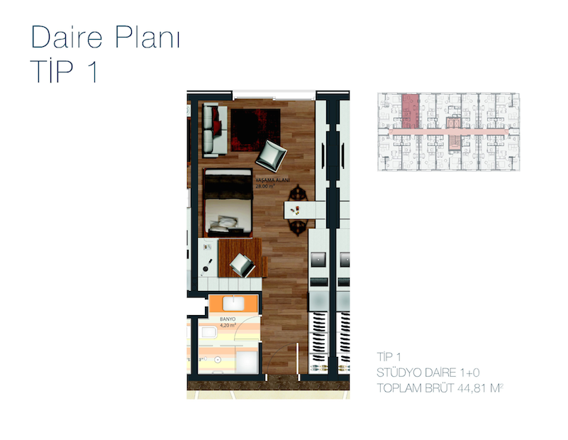 Daire Seçenekleri: 1+0,1+1, 2+1