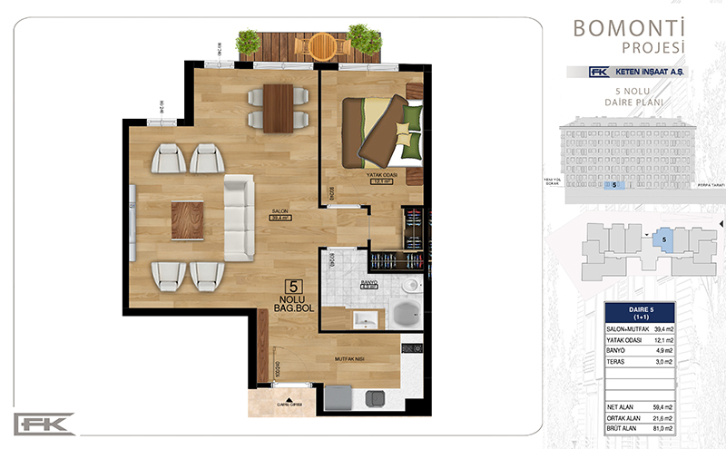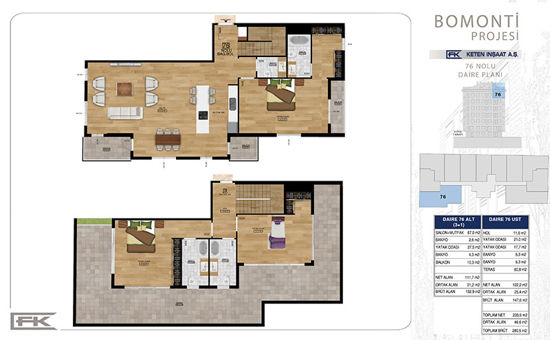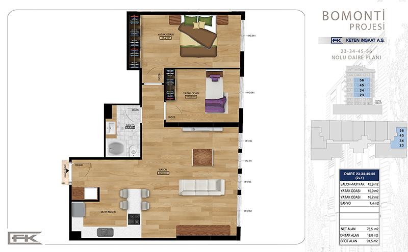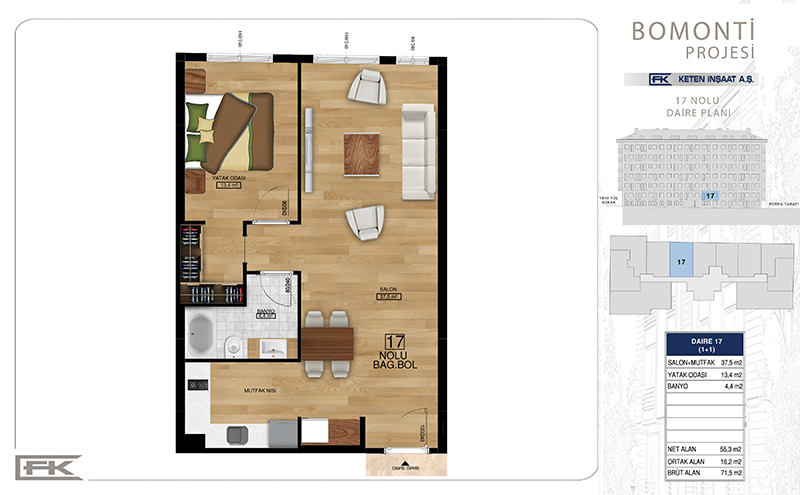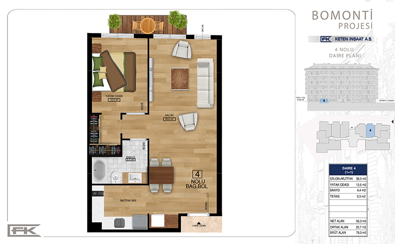 Daire Seçenekleri: 1+1,2+1,3+1