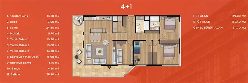 Daire Seçenekleri: 1+0,1+1,2+1,3+1,4+1