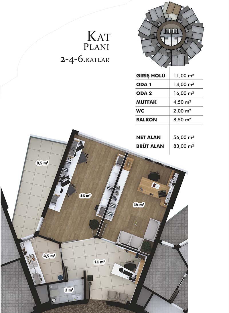 Daire Seçenekleri: 1+1