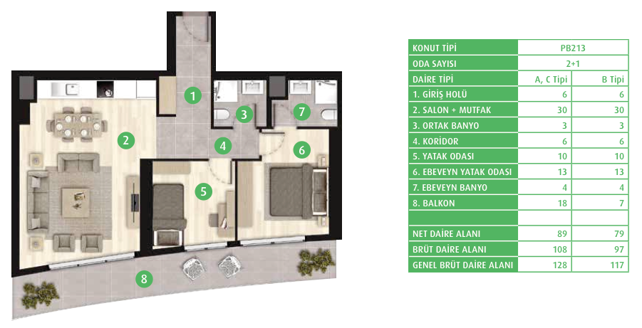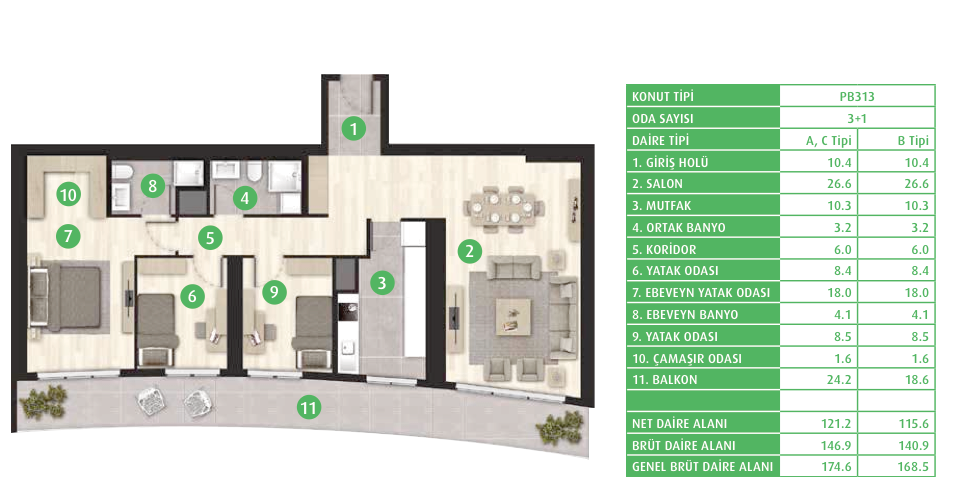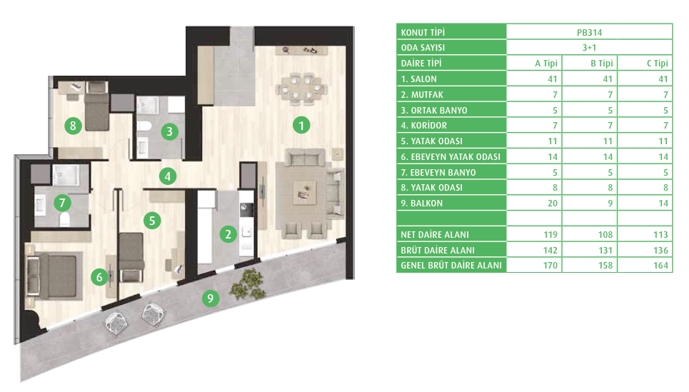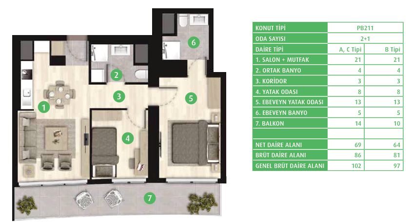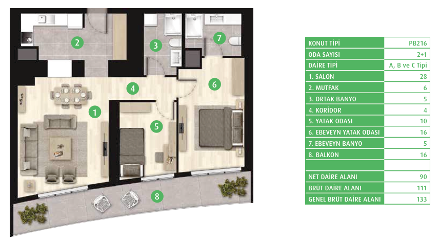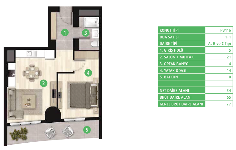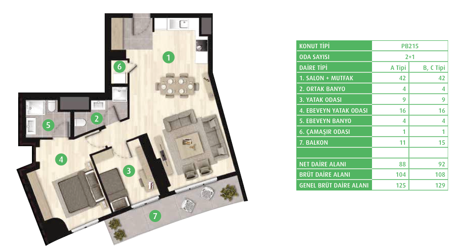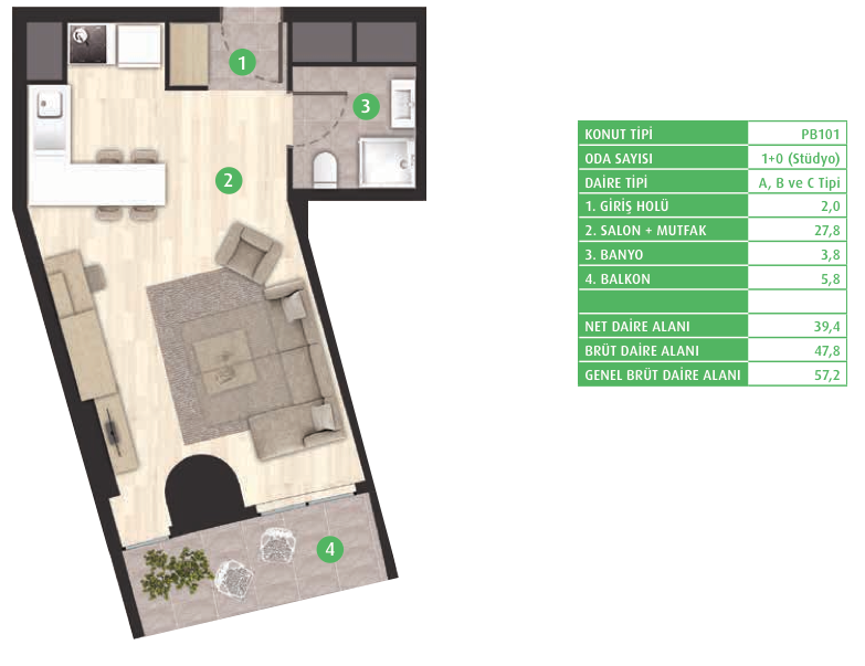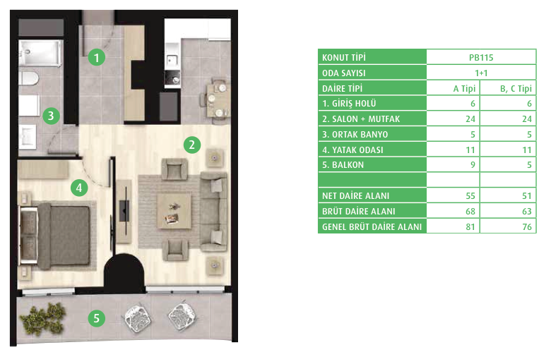 Daire Seçenekleri: 1+0,1+1,2+1,3+1