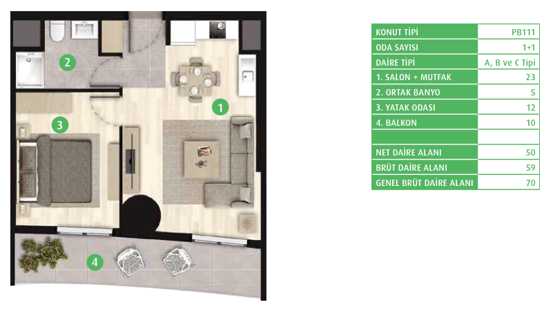 Metrekare Aralığı: 70