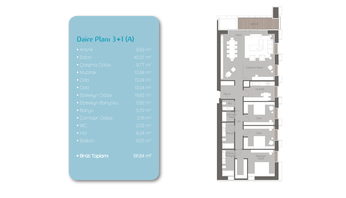 Daire Seçenekleri: 1+1,2+1,3+1,4+1,5+1